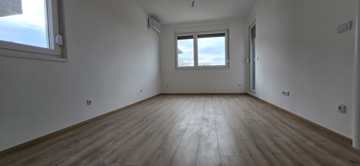 Stan se odlikuje funkcionalnim rasporedom i obiljem prirodne svetlosti. Dnevni boravak je prostran i povezan sa kuhinjskim delom, koji je spreman za ugradnju po sopstvenim željama. Veliki prozori pružaju lep pogled i dodatno osvetljavaju prostor, stvarajući prijatnu atmosferu za boravak.